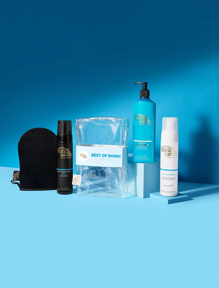 Prep, tan, maintain and erase with our Best of Bondi Gift Set. Packed in our Clear Travel Bag, our Self Tan top sellers will ensure you achieve a perfect tan, every time.