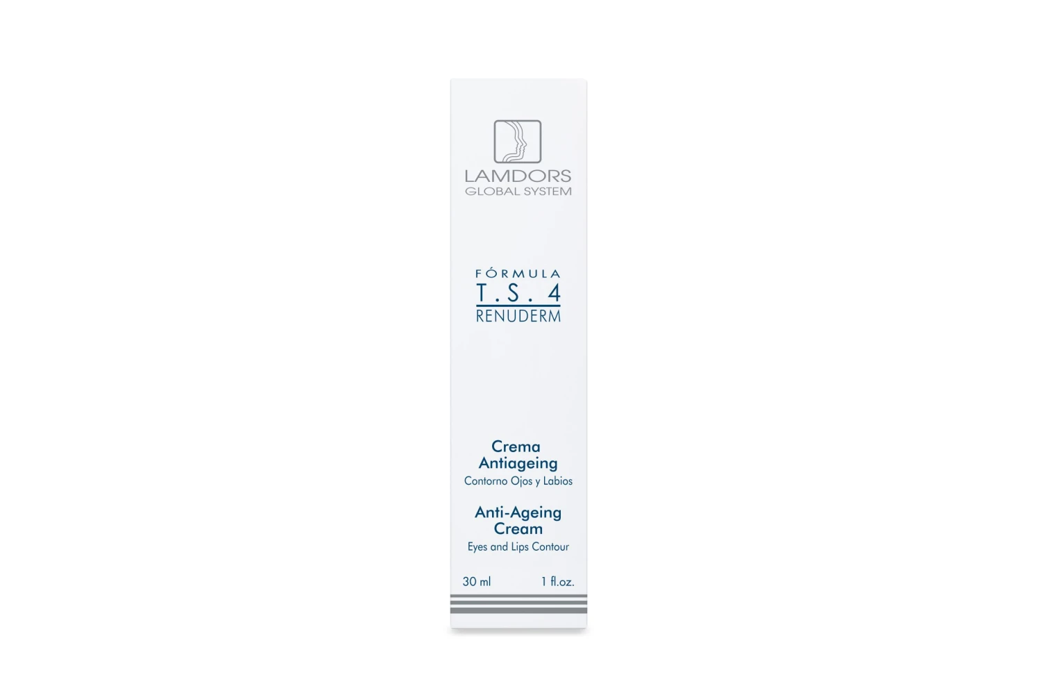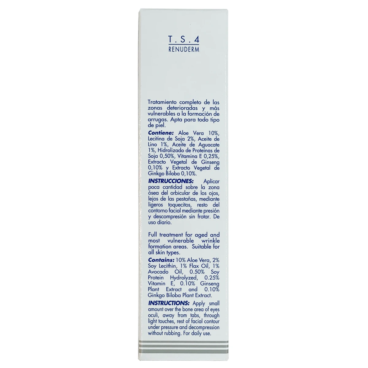 Fórmula TS4 Renuderm de Lamdors, anti-ageing especialmente creada para tratar las zonas del rostro más vulnerables a la formación de arrugas. Los componentes que contienen TS 4 han sido cuidadosamente seleccionados para tratar las zonas deterioradas del rostro que necesitan una regeneración y reafirmación profunda. Apta para todo tipo de piel.