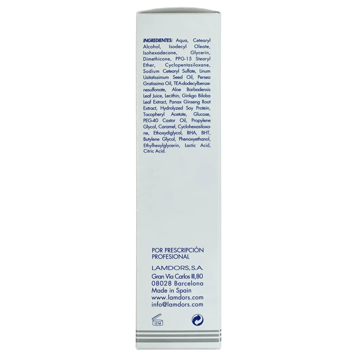 Contiene: Aloe Vera 10%, Lecitina de Soja 2%, Aceite de Lino 1%, Aceite de Aguacate 1%, Hidrolizado de Proteínas de Soja 0,50%, Vitamina E 0,25%, Extracto Vegetal de Ginseng 0,10% y Extracto Vegetal de Ginkgo Biloba 0,10%.