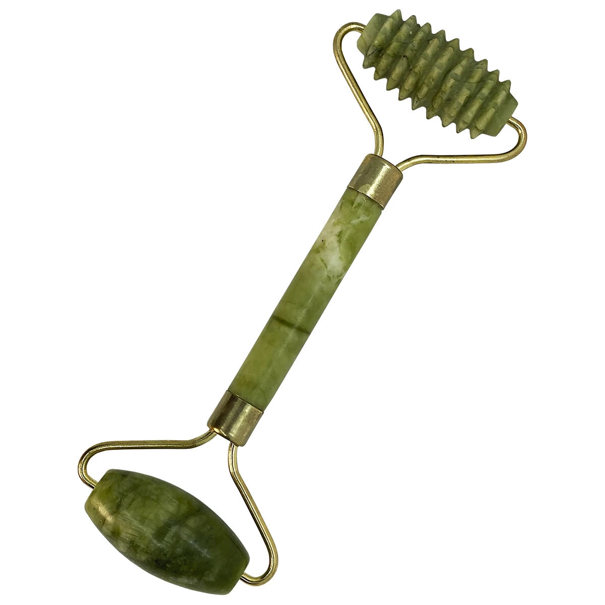 Rodillo masajeador facial disponible en dos versiones: liso o rugoso. El rugoso estimula la circulación. También tiene disponible la piedra lisa o plana que sirve para el drenaje.