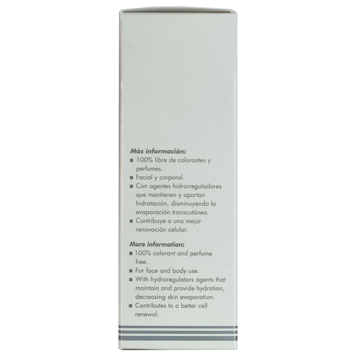 - Con agentes hidrorreguladores que mantienen y aportan hidratación, disminuyendo la evaporación transcutánea.