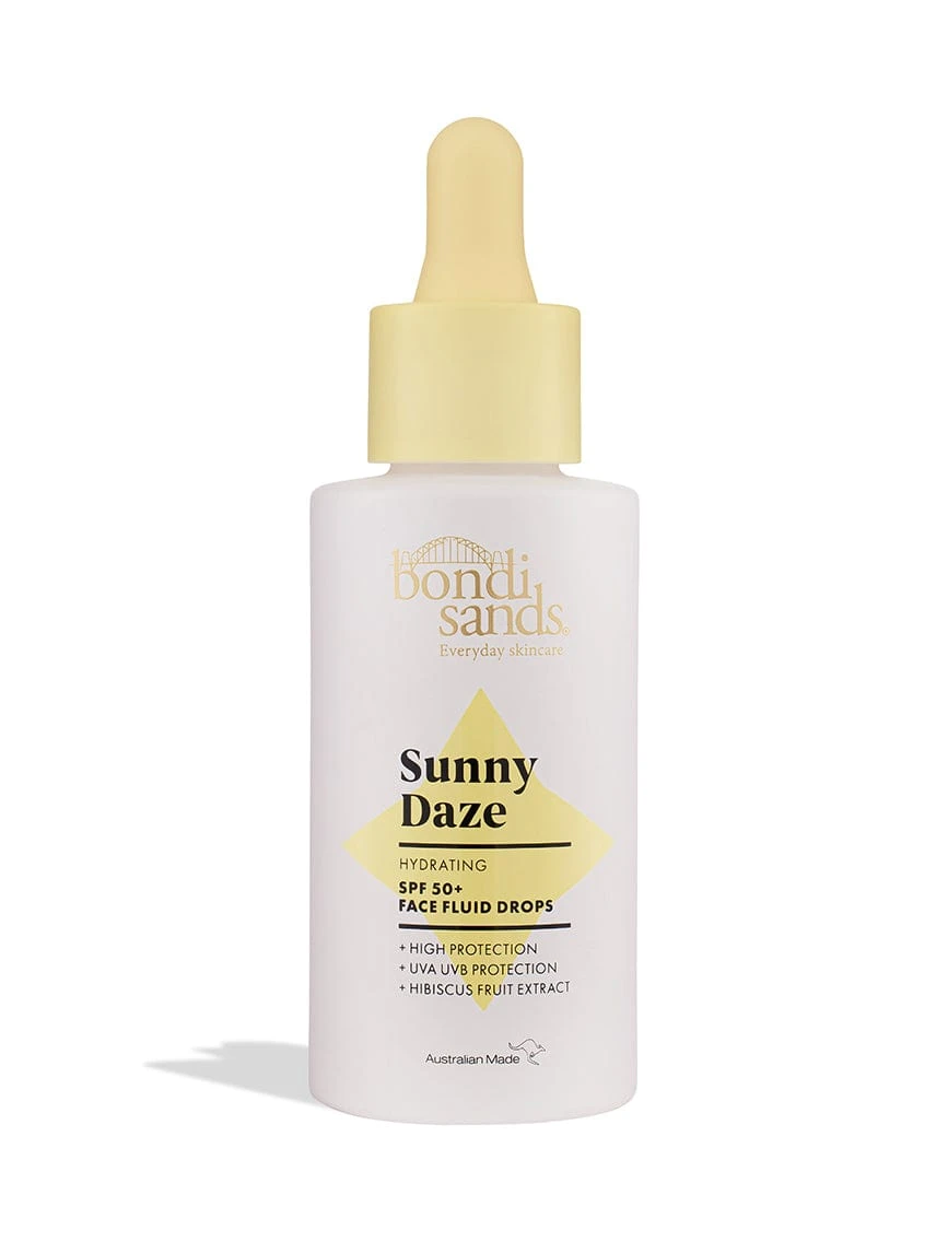 Don’t be in a daze when it comes to sun protection. These hydrating, SPF 50+ Drops are a daily essential to protect your face against UVA & UVB sun exposure. Bondi Sands Sunny Daze SPF 50+ Hydrating Drops are formulated as a chemical sunscreen to leave no white cast for an invisible, lightweight finish. Enriched with Vitamin E, Hibiscus Sabdariffa Fruit Extract and Aloe Vera to provide up to 72 hours of hydration whilst protecting the skin.